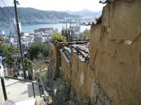 坂と海、一歩歩けば、景色が変わります。土壁と海、腕がよければ、よい写真が取れるのだが・・・。