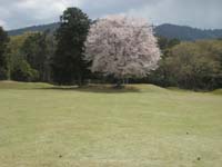 皆さんおそろいでお花見。石舞台古墳の桜を見ながら・・・。車座でいただきます。