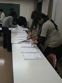 卒業論文もラストスパート。指導会にも熱がこもります。先輩の卒業論文を読んで・・・皆、驚愕。しっかり、勉強しーや、と声をかける。