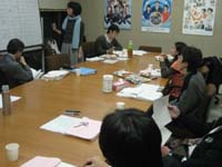 卒業論文を書き上げた人と、これから、書く人が交流会。真剣に卒業論文について、話し合います。まずは、ワークショップで、四年生が体験を語ります。