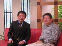 NHK奈良局で録画撮り。キャスターの大山武人さんと。上野のあごの下が・・・。やはり、太っているなぁ。