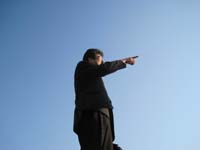 写真を撮る上野誠。こんな感じで撮っているのか? アホクサー。