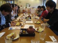 飛鳥ウォークのお手伝い、今日はごくろうさん。ケーキとお茶をごちそう。食べてやぁ。