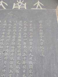 抗日戦争期の大学受難者の碑。重慶大爆撃をしていますからね。犠牲者名も刻まれています。5分ほどですが、黙祷しました。