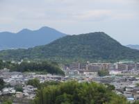 香具山から見た畝傍山。ここまで来ると山容が変わる。丸く見えるようになる。
